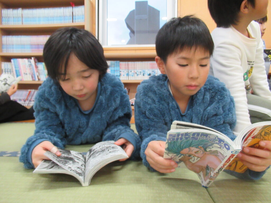 季節に合わせた絵本コーナーや、子どもたちのリクエストにこたえたコミック。