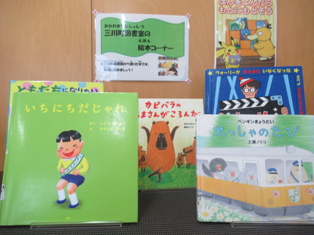 昨年度からは、「三川町図書館」からお借りした本コーナーも登場しました。