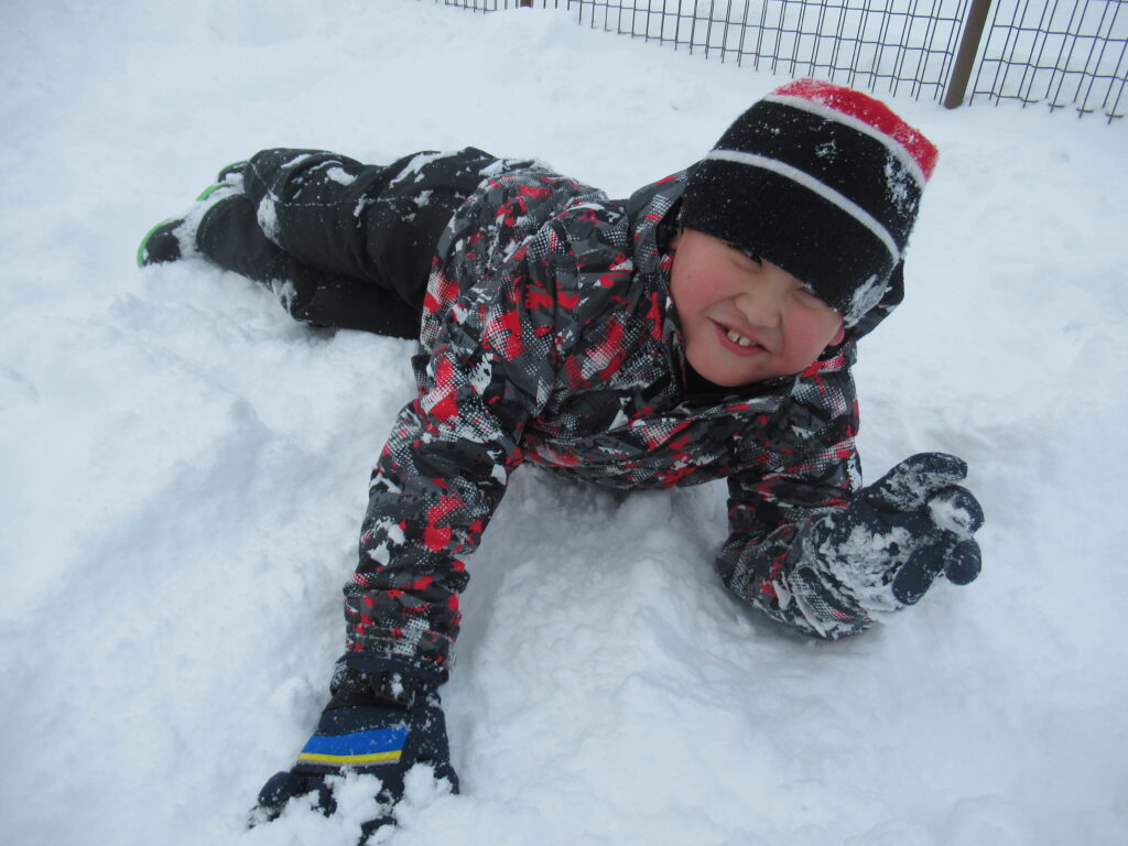そこで!!雪が降り積もった日に、駐車場で雪遊びをしました☃