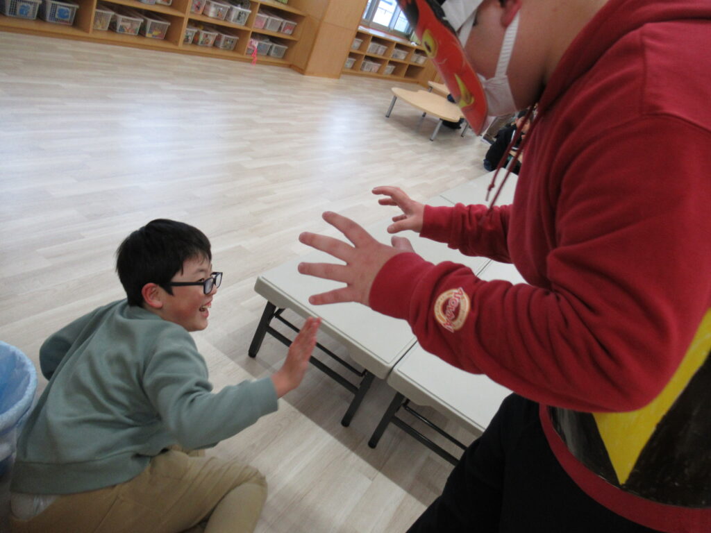2026年2月6日 / 最終更新日 : 2026年2月6日 kidsadmin お知らせ一覧 鬼は来るの? 2月3日は節分でしたね。子ども達は数日前から「節分で鬼は来る?」と不安な様子。当日もずっとソワソワでした。怖い鬼は来ませんでしたが職員が鬼の扮装をして節分の雰囲気の中、おやつを食べました。