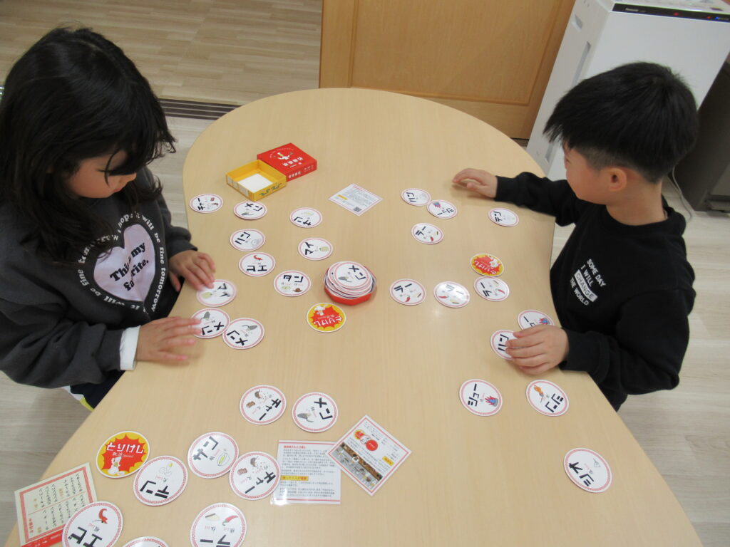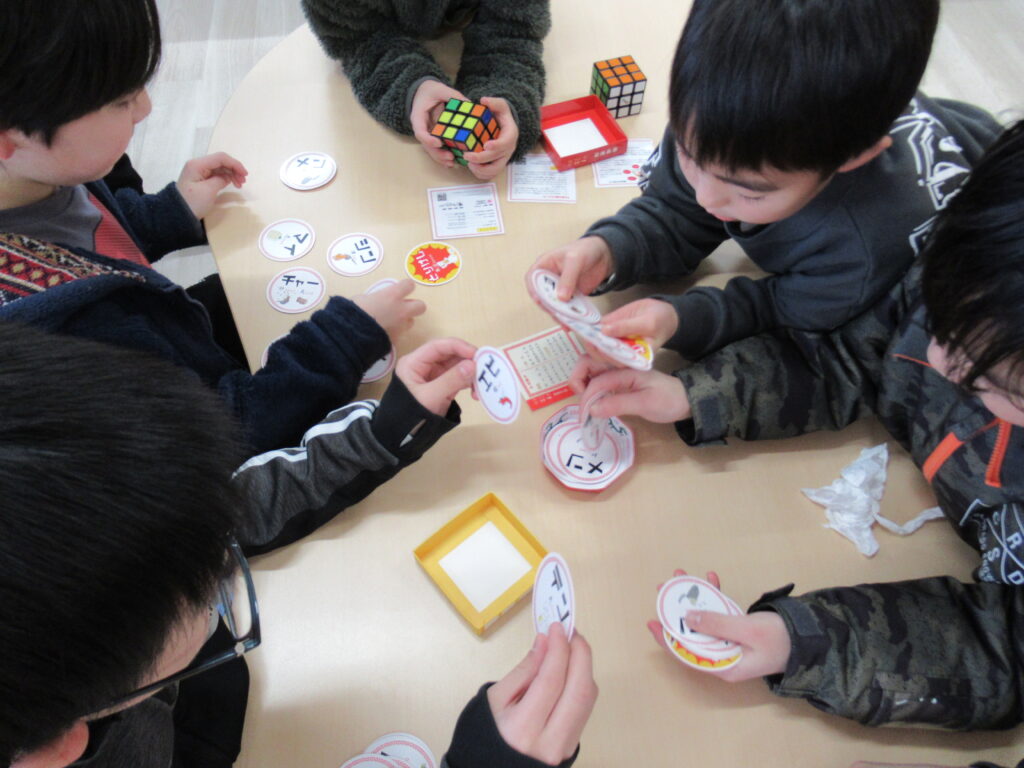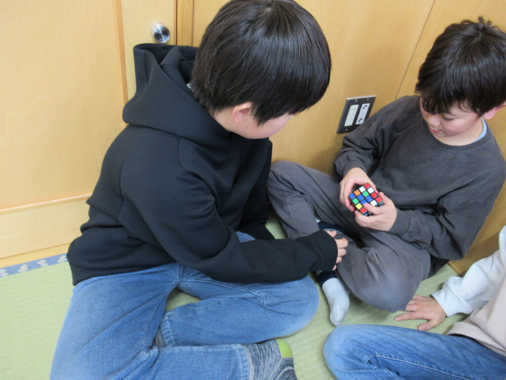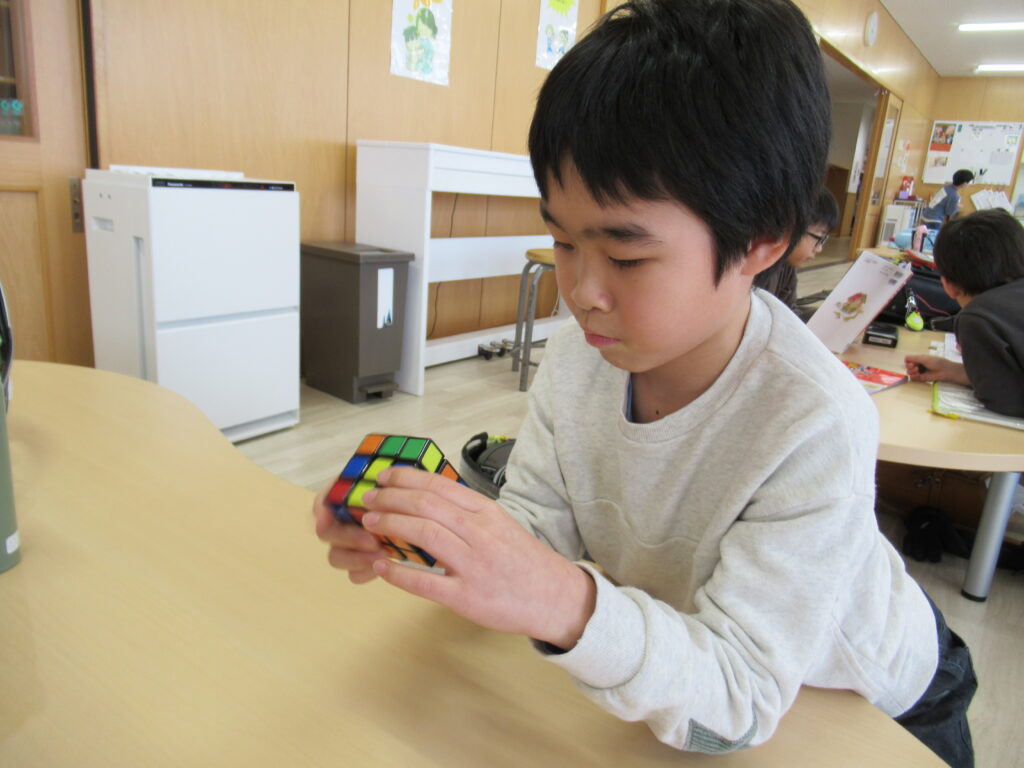 今、人気の遊びはルービックキューブやカードゲームです。ルービックキューブは何度も挑戦して全面クリアする子が増えています。
