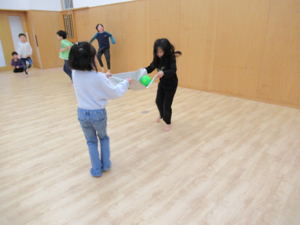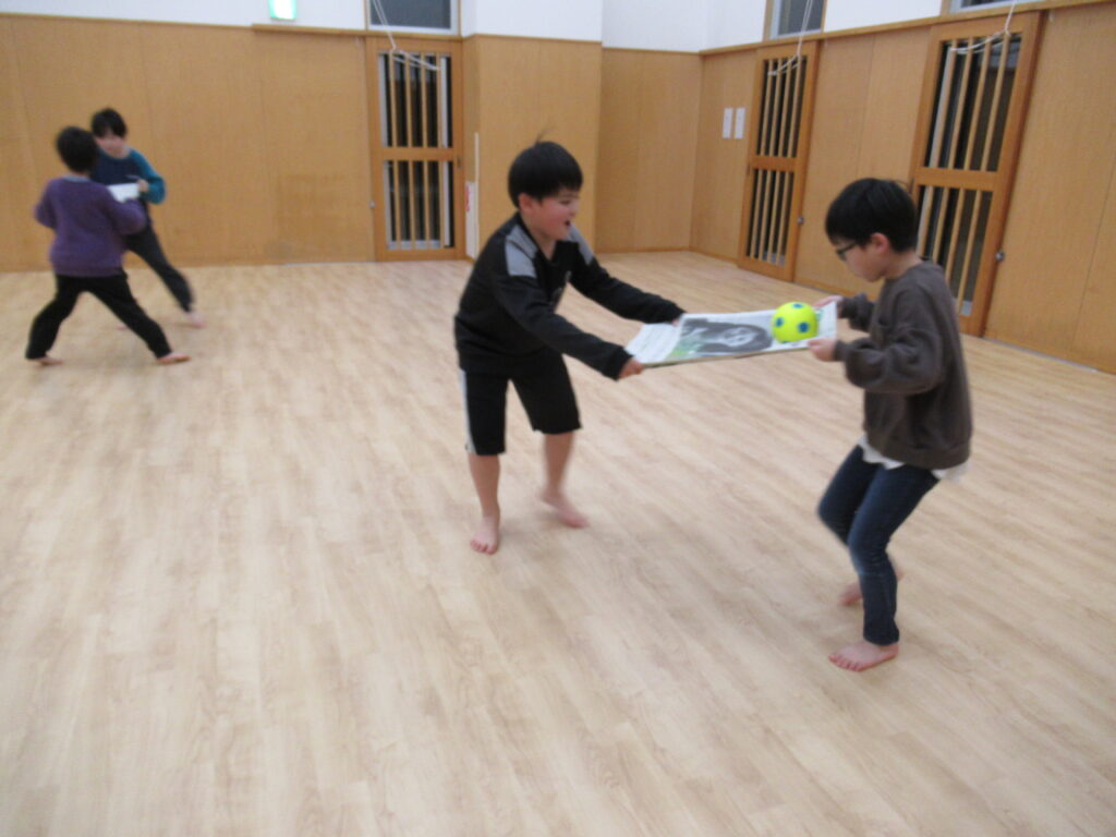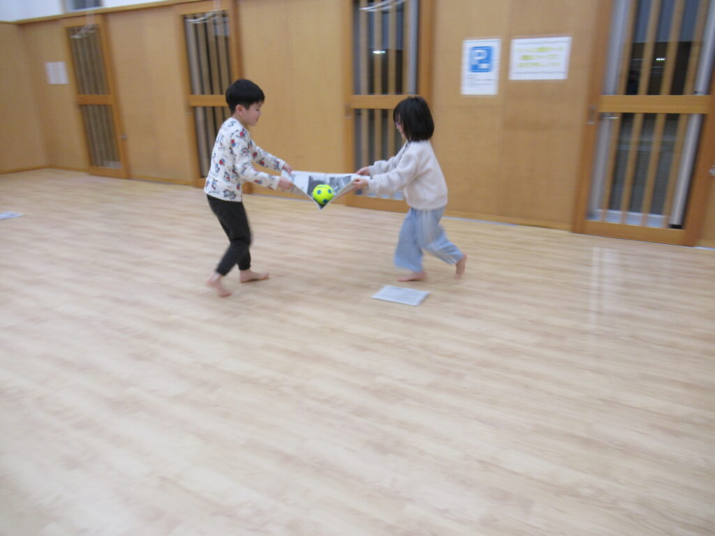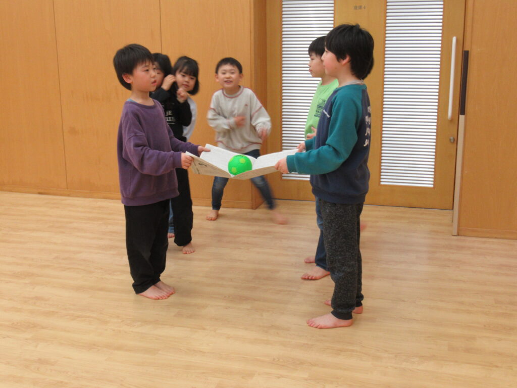 ボール送りリレー。二人の呼吸を合わせて運ぶよ!